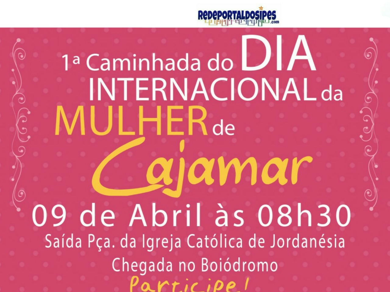 A Prefeitura de Cajamar, por meio do Fundo Social de Solidariedade, realizará neste sábado (9), a 1ª Caminhada do Dia Internacional da Mulher. O evento foi remarcado, devido as fortes chuvas ocorridas em março.